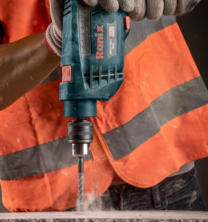 دریل چکشی 2120 رونیکس، با موتور قدرتمند 750 وات کار میکند که مجهز به آرمیچر و بالشتکهای صنعتی است. این قطعات مطابق آخرین استانداردهای روز دنیا ساخته شدهاند. این دریل، با ترکیب دو نیروی چرخشی و ضربهای، سوراخکاری معمولی و سوراخکاری چکشی را در سطوح بسیار سخت مانند انواع دیوار به آسانی انجام میدهد. حداکثر سرعت گردش در این دریل چکشی پرقدرت 2800 دور بر دقیقه است که به وسیله کلید الکترونیک دیمردار تنظیم میشود.