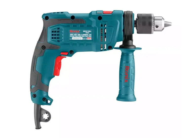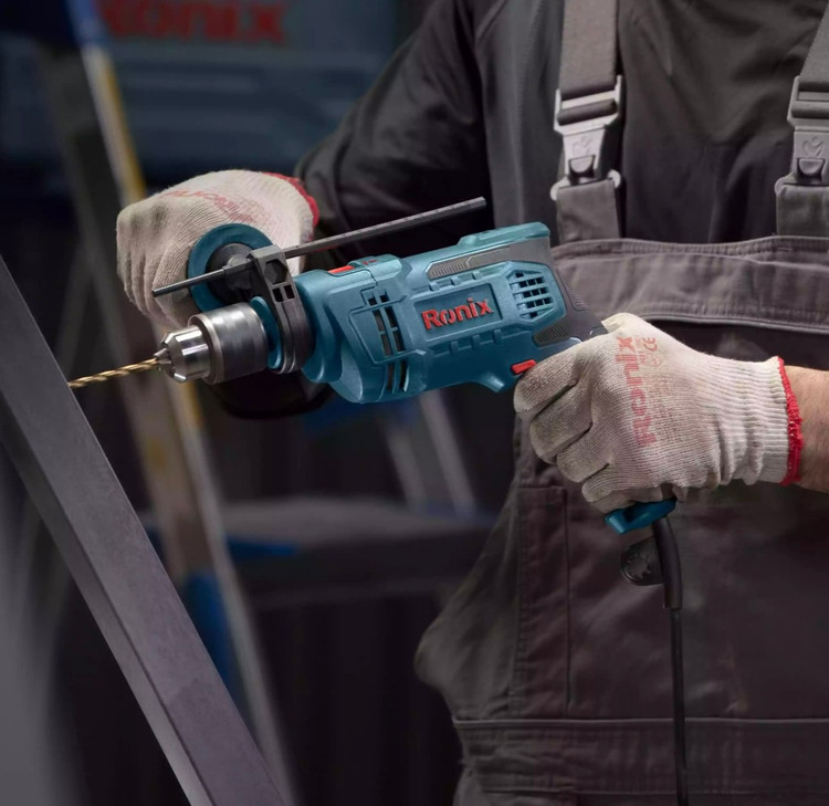کیت دریل چکشی 2214K رونیکس، مجهز به موتور قدرتمند 750 وات است و استقامت بالایی را در شرایط پرفشار و فعالیتهای سنگین صنعتی نشان میدهد. سه نظام آچاری 13 میلیمتری این دریل، تمام فلزی و بسیار مقاوم ساخته شده و کار بر روی سطوح بسیار سخت و متراکم را امکانپذیر میکند. این سهنظام قدرتمند، مته را محکم سر جای خود نگهمیدارد و بدون کمترین انحراف، با سرعت به گردش درمیآورد.