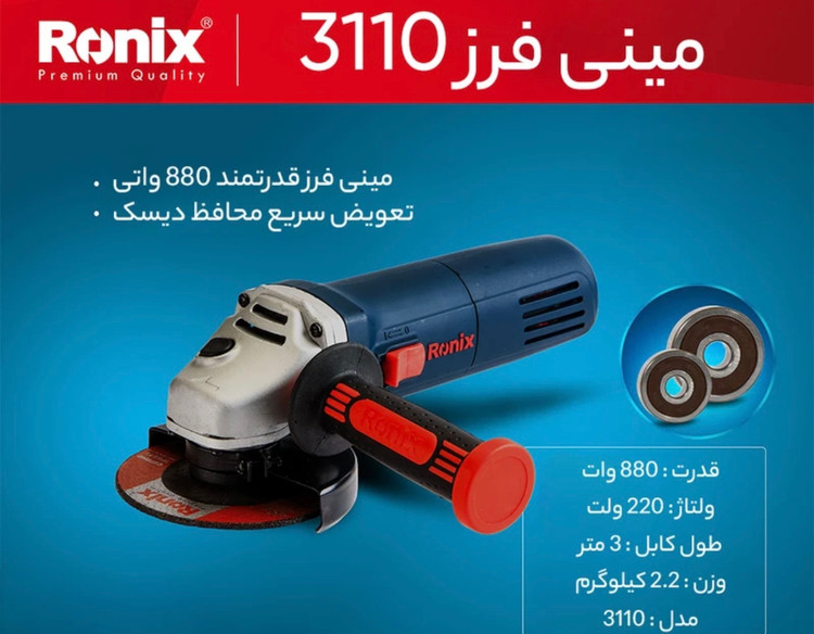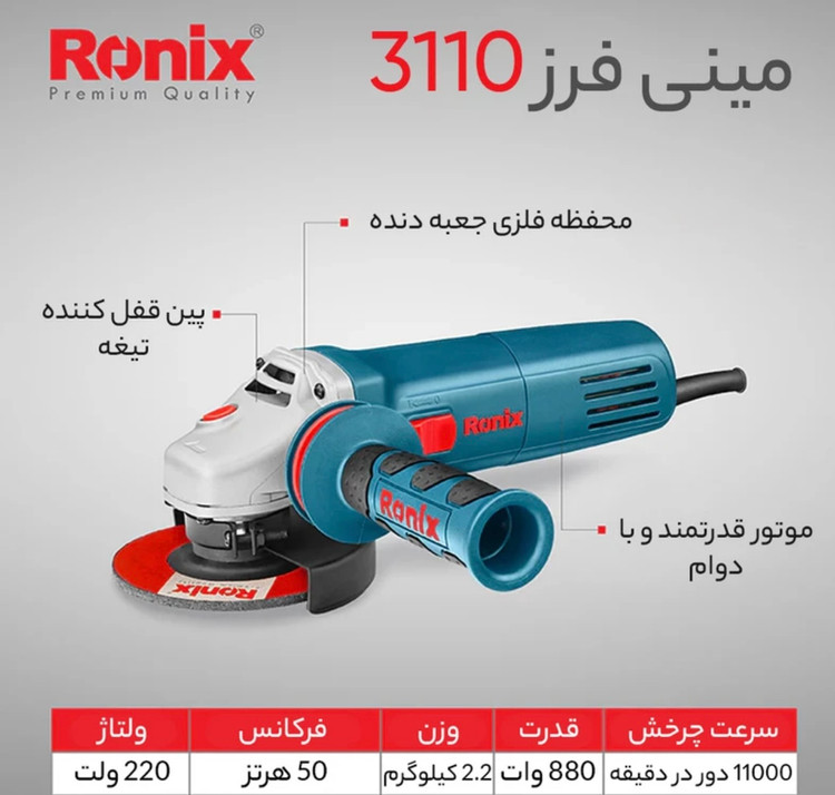 در بخش توضیحات محصول، مشخصات فنی مینی فرز برقی 115 میلیمتری 880 وات رونیکس مدل 3110 را بررسی میکنیم.
