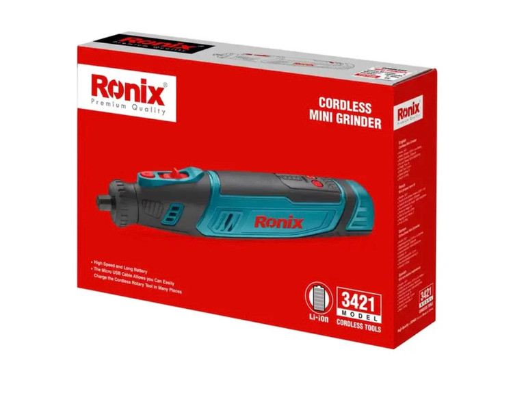 محصول 3421 رونیکس نیز از این قاعده مستثنی نبوده و بدنهای جمعوجور و خوشدست با تنها 0.4 کیلوگرم وزن دارد که با رابر ضد تعریق و ضدلغزش روکش شده و در برابر انواع ضربات و سقوط احتمالی از دست کاربر بسیار مقاوم است. در بخش توضیحات محصول، بیشتر با فرز مینیاتوری شارژی 8 ولت رونیکس مدل 3421 آشنا شوید.