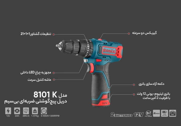 | ولتاژ باتری | 12 ولت |