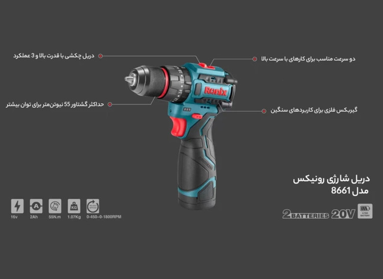 | ولتاژ باتری | 16 ولت |