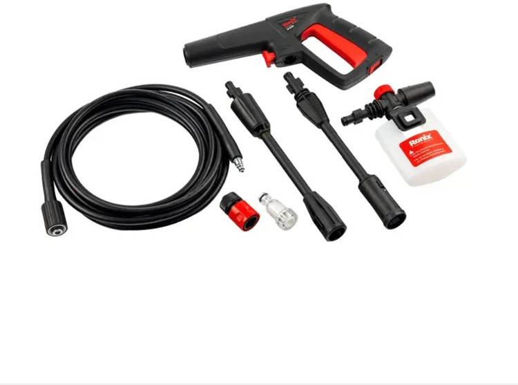 | متعلقات | کوپلینگ اتصال سریع، لانس قابل تنظیم، شلنگ 5 متری فشارقوی PVC، مخزن مواد شوینده، تفنگ آبپاشی فشار قوی، |