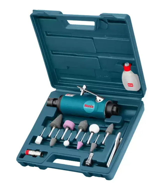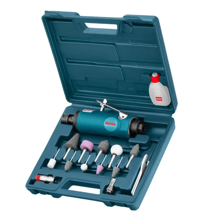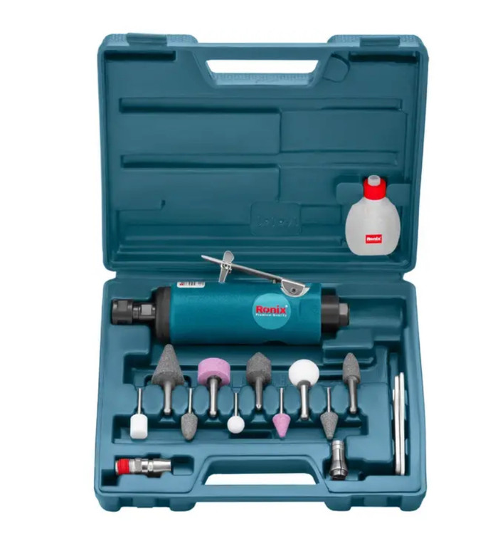 | متعلقات | ۲ عدد آچار،10 عدد سنگ سنباده، 1 عدد کوپلر ، 1 عدد جعبه بادی، 1 عدد کولت ۱/۸ اینچ (۳ میلیمتر)، 1 عدد روغندان |