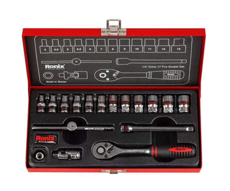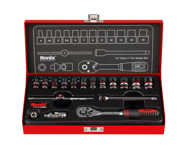 جعبه بکسی شامل 17 قطعه 1/4 اینچی