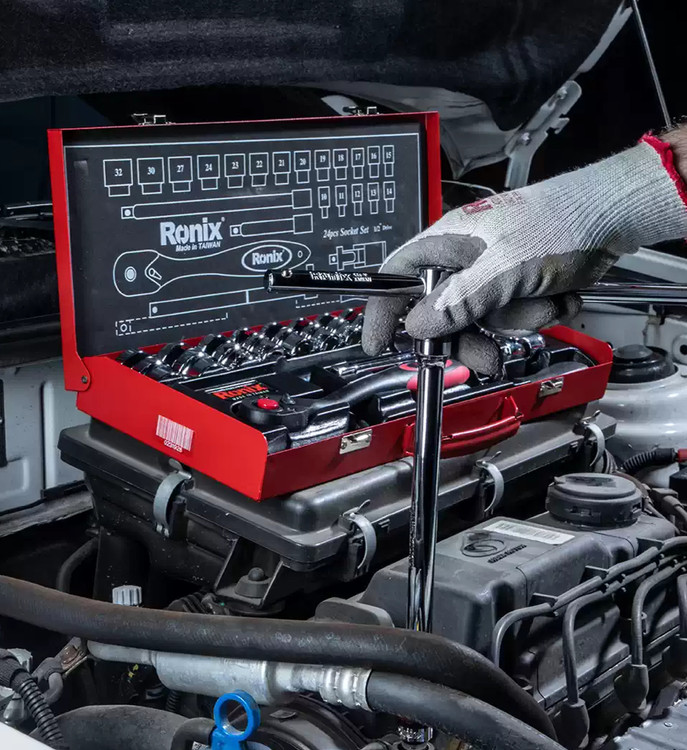 دارای بکس شمع 16 میلی متری دارای 2 دسته کمکی 10 اینچی جغجغه 1/2 اینچی 72 دندانه با دسته ارگونومیک دسته هندلی 1/2 اینچ دارای یک آچار لقلقه 1/2 اینچ
