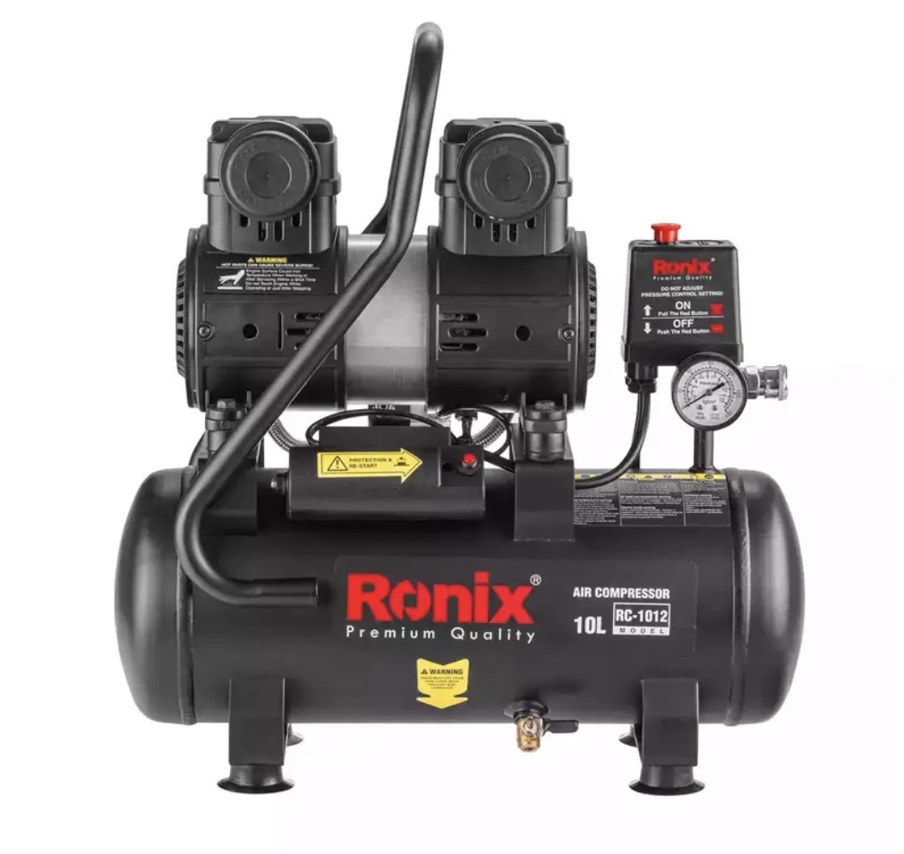 ویژگیهای بارز کمپرسور باد 10 لیتری بیصدا RC-1012رونیکس عبارتند از: موتور القایی 1280 وات جهت کار به صورت مداوم، عدم نیاز به روغنکاری، سوپاپ اطمینان، طراحی پمپ به شکلی نوین و کمصدا، استفاده از کلید FBANG جهت افزایش کارایی و اثربخشی دستگاه، طراحی ارگونومیک و قابلیت حمل و جابهجایی آسان دستگاه، برخورداری از سیستم محافظ حرارتی و گیج فشار.