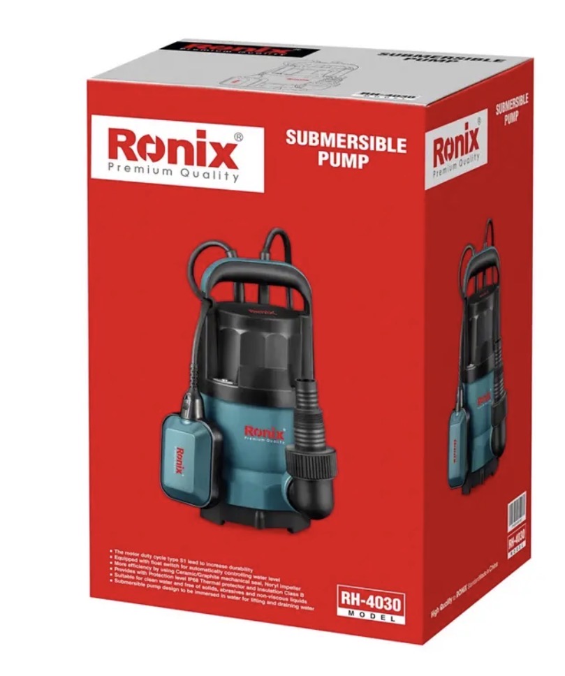 از پمپ کفکش 0.55 اسب بخاری رونیکس مدل RH-4030، برای مصارف خانگی، بالاکشیدن و تخلیه آب از مخازن و استخرها، آبیاری باغ و محوطهها استفاده میشود. این پمپ تکفاز و فلوتردار، برای پمپاژ آبهای تمیز و بدون آلودگی یا لجن طراحی شده است.