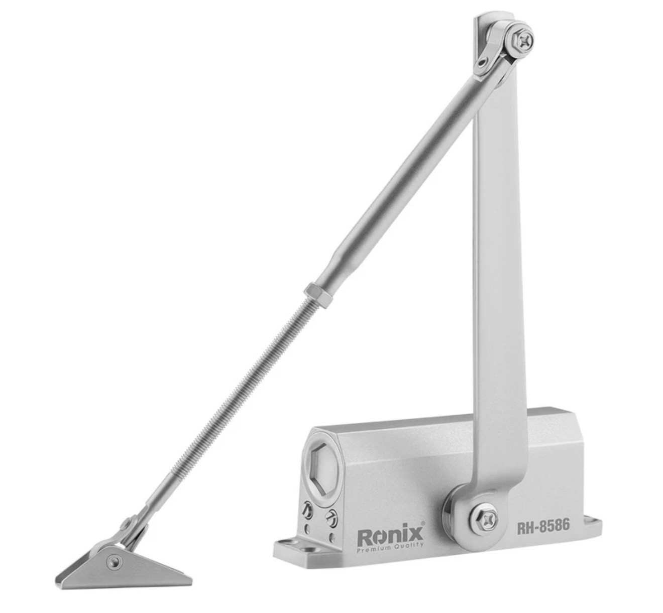 مدار هیدرولیک دو سرعته با پیچهای تنظیم برنجی، بازو با طول قابل تنظیم برای نصب آسانتر، دو سوپاپ مجزا برای تنظیم سرعت بستهشدن و چفتشدن، امکان نصب در انواع دربهای راست بازشو و چپ بازشو، از مهمترین ویژگیهای این محصول کارآمد رونیکس هستند.