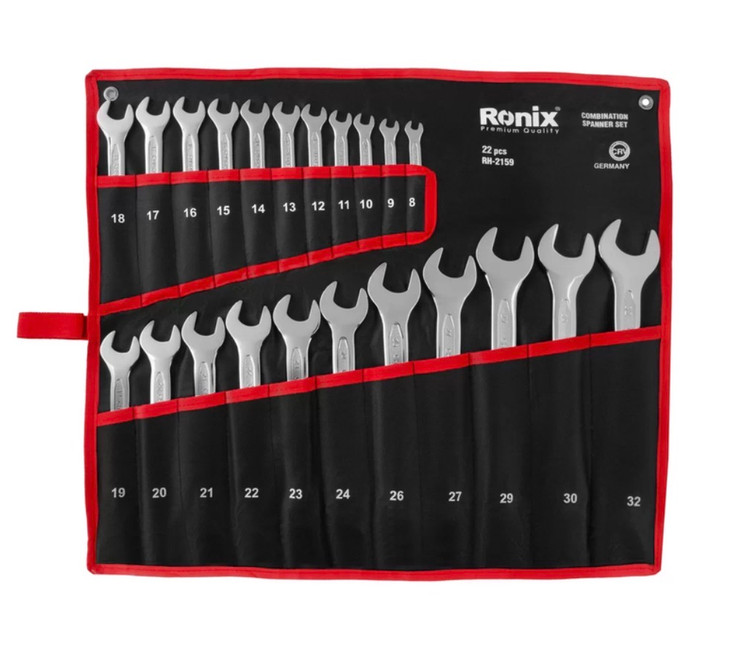 آچار سری 22 عددی یکسر تخت یکسر رینگ کیفی رونیکس مدلRH-2159، شامل سایزهای متنوع آچار از جنس آلیاژ کروم وانادیوم است. مجموعه ابزاری کارآمد که نیاز هر جعبه ابزاری است.