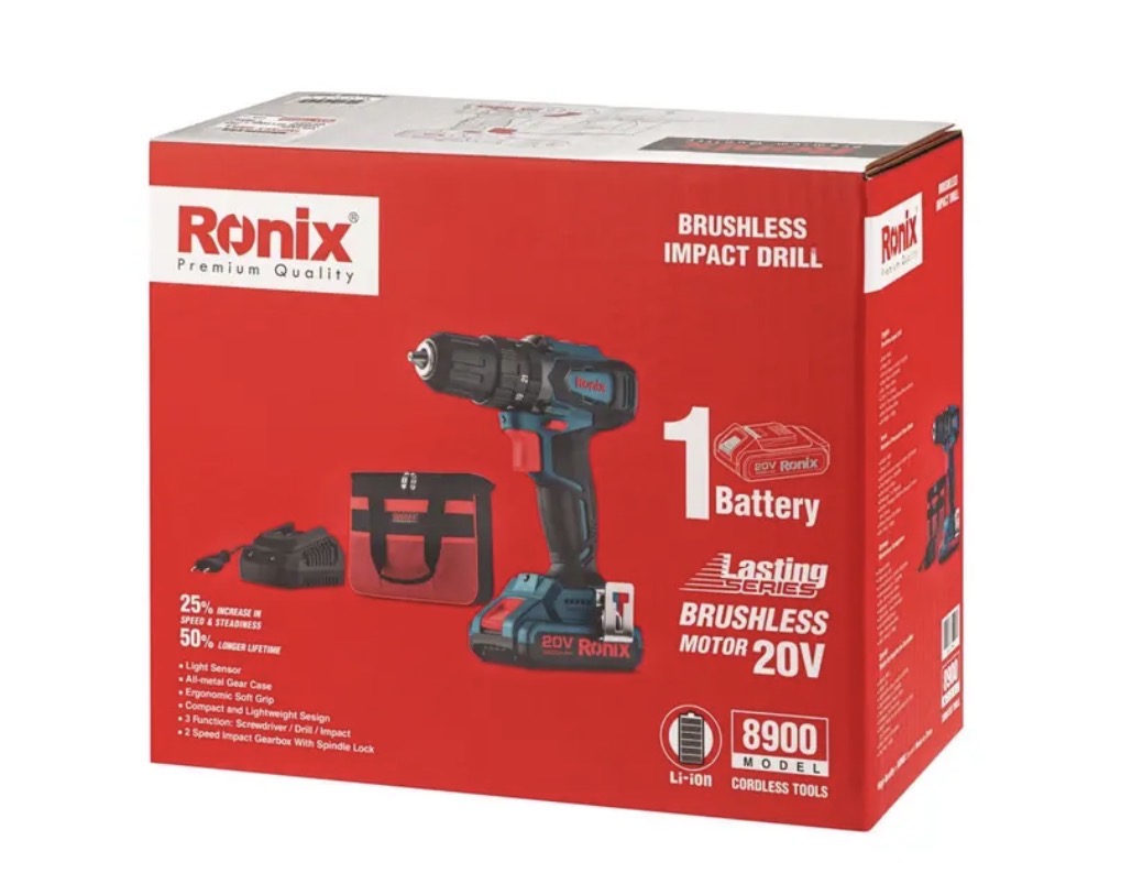 موتور براشلس و مقاوم به رطوبت و غبار در دریل پیچگوشتی 8900 رونیکس، انرژی مورد نیاز خود را از یک عدد باتری لیتیوم یون 20 ولت با طول عمر و دوام بالا تامین میکند. این موتور، 50% طول عمر بیشتر و 25% سرعت و یکنواختی عملکرد بیشتری را از خود نشان میدهد. برای آشنایی بیشتر با مشخصات فنی دریل پیچگوشتی چکشی شارژی 13 میلیمتری براشلس 20 ولت رونیکس با مدل 8900، بخش جزئیات محصول راهنمای خوبی برای شما است.