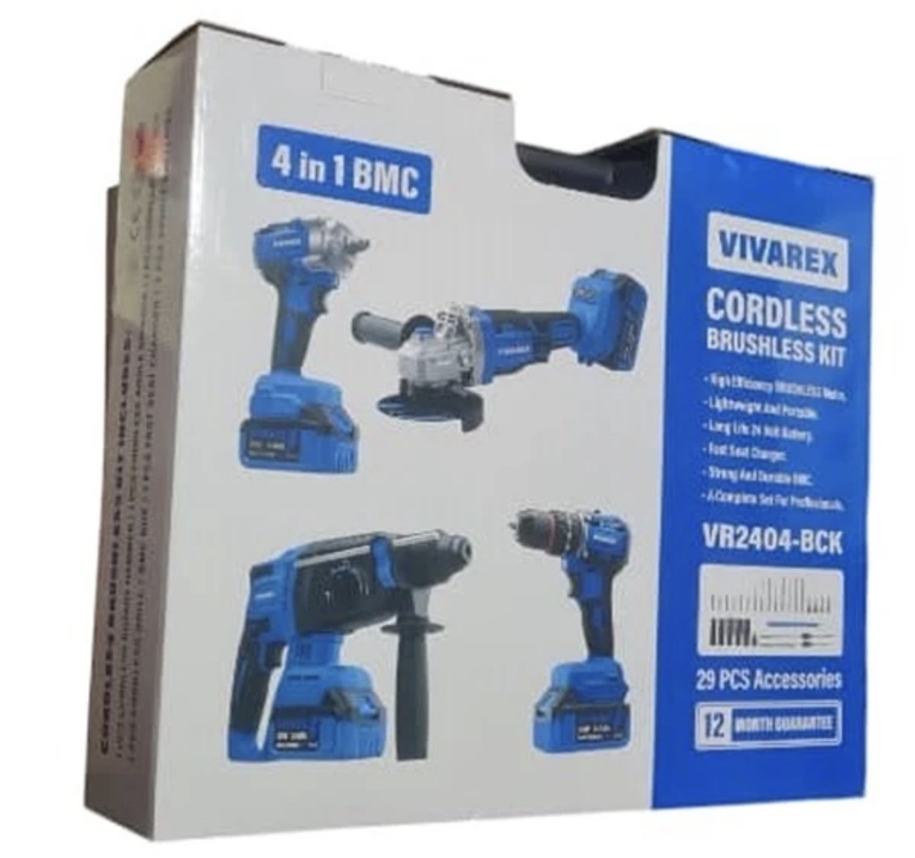 دريل بتن كن ٢٤ ميليمتر براشلس دريل جكشى ٢٥ نيوتن براشلس مينى فرز ٨٥٠٠ دور براشلس بكس ٥٠٠ نيوتن براشلس ٣ عدد باطرى ٢٥ ولت ٢ آمپر يك عدد پایه شارژ فست كيف BMC زيبا و مقاوم همراه متعلقات