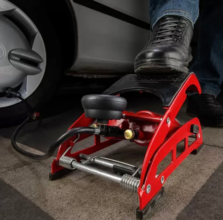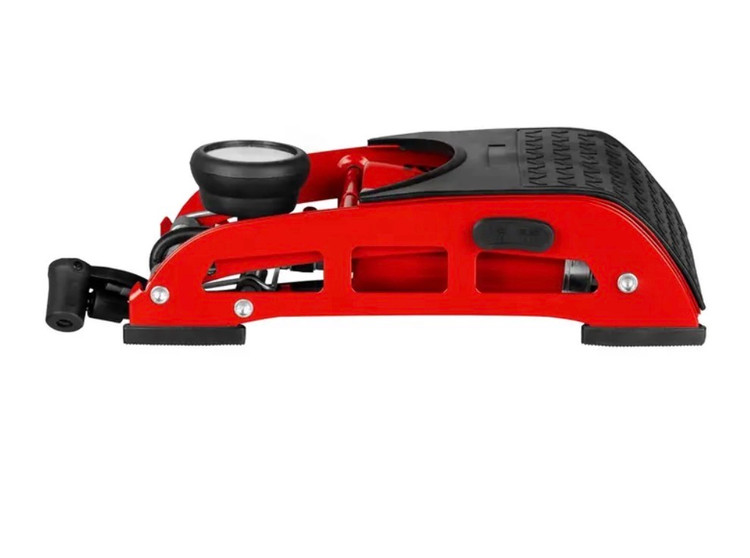 گیج فشار روی این تلمبه پایی رونیکس امکان کنترل فشار باد را فراهم کرده و گیره ایمنی پدال از بیرون پریدن ناگهانی پمپ جلوگیری میکند و باعث ایمنی کاربر میشود