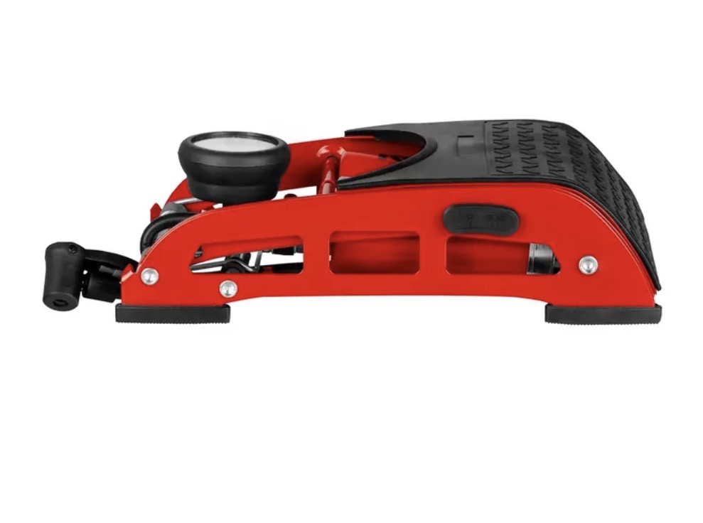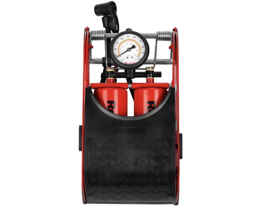 گیج فشار روی این تلمبه پایی رونیکس امکان کنترل فشار باد را فراهم کرده و گیره ایمنی پدال از بیرون پریدن ناگهانی پمپ جلوگیری میکند و باعث ایمنی کاربر میشود