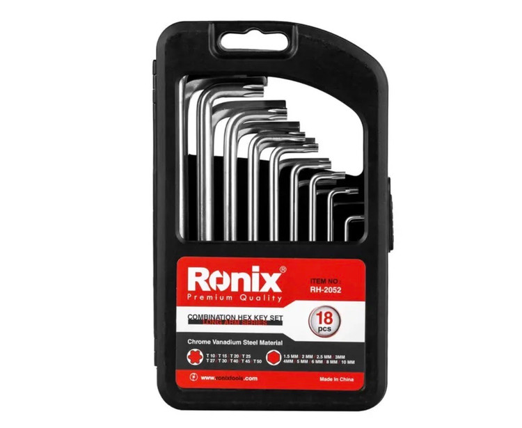 محصول RH-2052 رونیکس ابزاری کامل و کار راه بنداز است. مجموعهای 18 عددی متشکل از 9 آچار آلن شش گوش و 9 آچار آلن ستارهای.