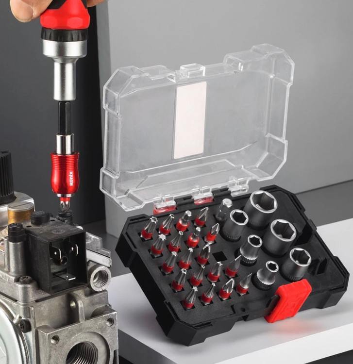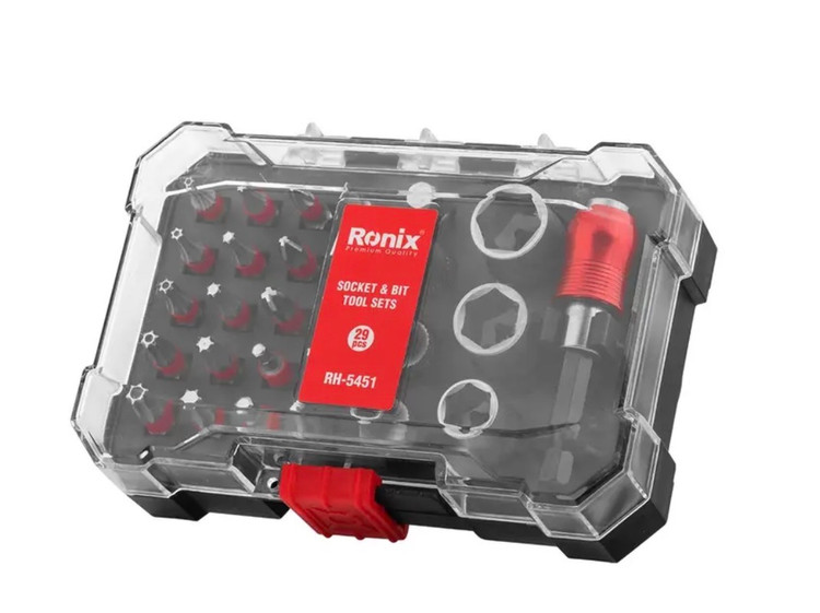 مجموعه سری پیچ گوشتی و سری بکس RH-5451 رونیکس، متشکل از 29 قطعه است که از مواد باکیفیت ساخته شده و دارای انواع مختلف سری پیچ گوشتی و بکس، متناسب با انواع کاربری میباشد. این مجموعه، طیف متنوعی از انواع سری دوسو/ چهارسو/ چهارسو pozi/ ستارهای/ ستارهای proof/ ششگوش را به کاربران ارائه میدهد.
